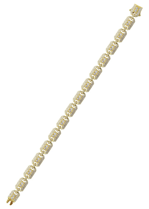 Silver Bracelet-Gold Iced Out Square Link Bracelet