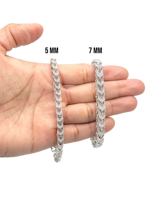 Pure Silver (925) Iced Franco Bracelet with Rhodium bonded 6 times to provide optimum quality. These chains are fully bracelets, so you can pick your length and width above. Once you selected your length and width, you can see the adjusted gram weight below the price.
