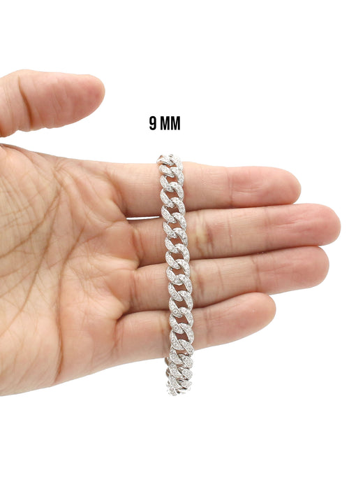 Pure Silver (925) White Iced Out Miami Cuban Bracelet with Rhodium bonded 6 times to provide optimum quality. These bracelets are fully customizable, so you can pick your length and width above. Once you selected your length and width, you can see the adjusted gram weight below the price.
